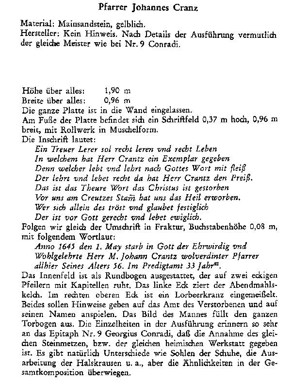 | Epitaph des Pfarrer M. Johannes Cranz auf dem Friedhof in Marktbreit ![]() |